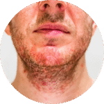 Verstopfte Poren unter dem Bart führen häufig zu Akne-Ausbrüchen, besonders bei Männern mit fettiger Haut.